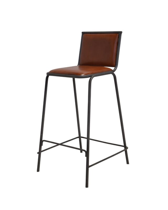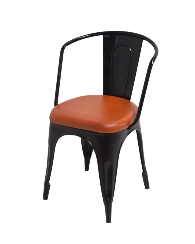 Industrial Metal Bar Chair with Tan Leatherette Seat