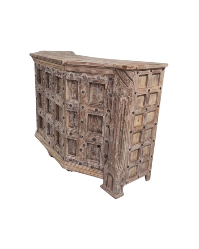 Textured Mango Wood Sideboard Cabinet with Carved Front