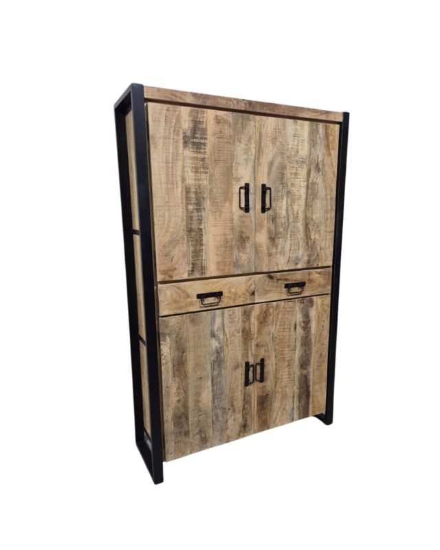 Industrial Mango Wood Tall Storage Cabinet with Metal Doors
