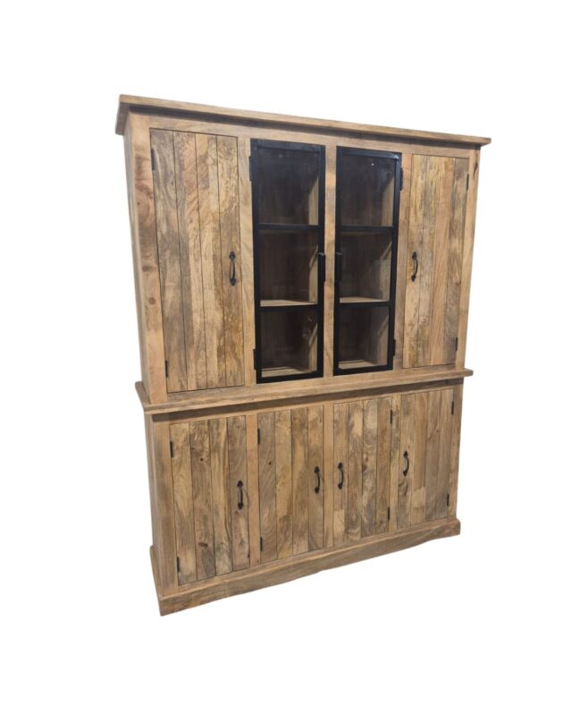 Rustic Mango Wood Buffet & Hutch with Central Glass Doors