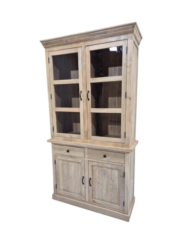 Classic Light Mango Wood Buffet & Hutch with Glass Doors