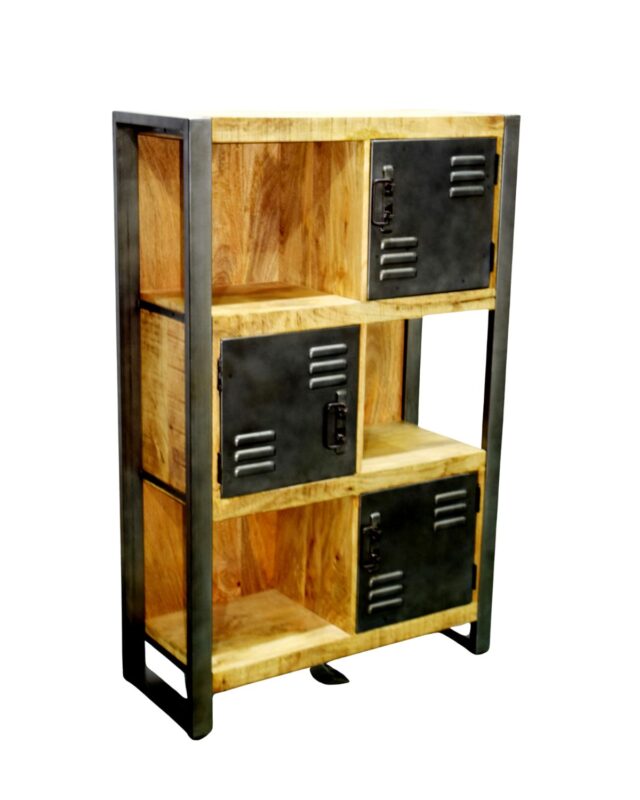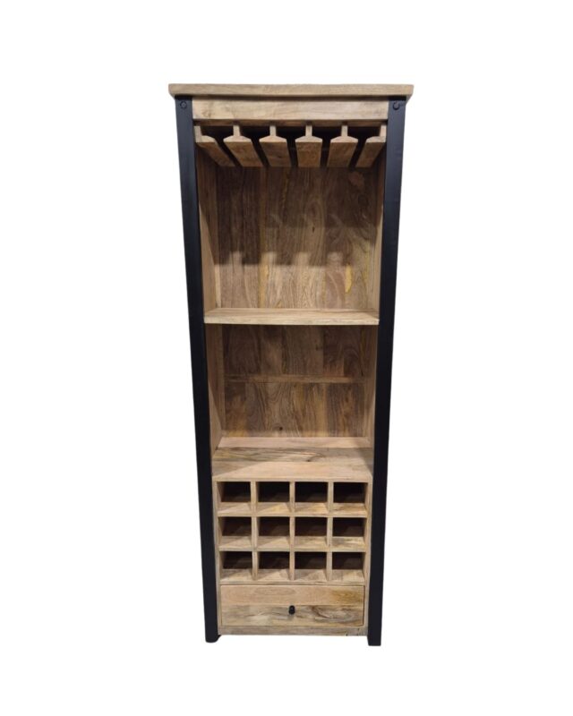 Industrial Mango Wood Wine Cabinet with Glass Rack