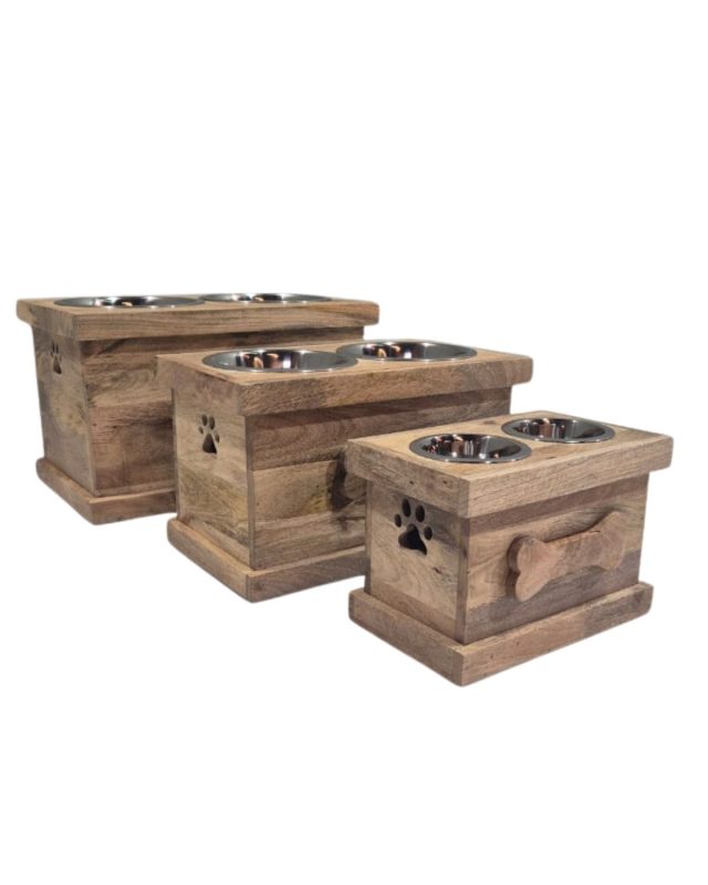 Wooden Pet Feeder Stand – Set of 3 with Stainless Steel Bowls