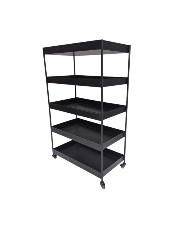 Its sleek matte-black finish blends effortlessly with industrial, minimalist, and contemporary interiors. Built with smooth-rolling caster wheels, the rack provides easy mobility—allowing you to move and rearrange your space with convenience. Whether used as a display shelf, utility rack, or storage organizer, this piece delivers style and practicality in one compact design.