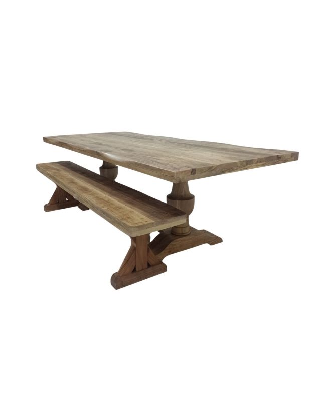Solid Mango Wood Pedestal Dining Table Set with Matching Benches