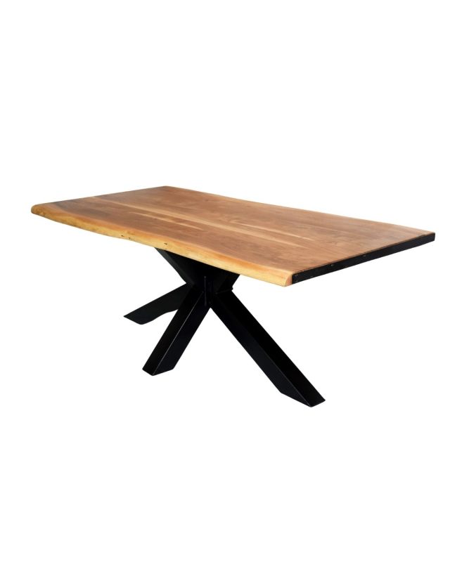 Live Edge Solid Wood Dining Table with Black Metal Spider Base