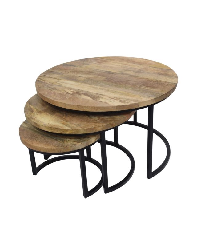 Modern Mango Wood Coffee Table with Curved Edge Top & Iron Base