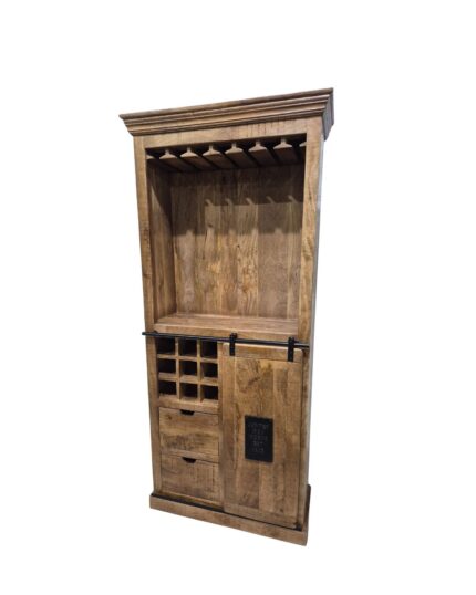 Industrial Mango Wood Bar Cabinet with Wine Rack & Sliding Door