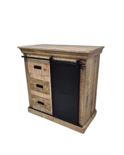 Industrial Mango Wood Cabinet with Sliding Door & 3 Drawers