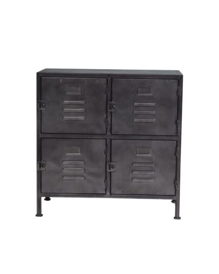 Bring raw factory style and practical storage into your home with this Industrial Metal 4-Door Locker Cabinet from VB Crafts. Built entirely from sturdy metal with a matte, weathered finish, this compact cabinet is inspired by classic school and gym lockers.