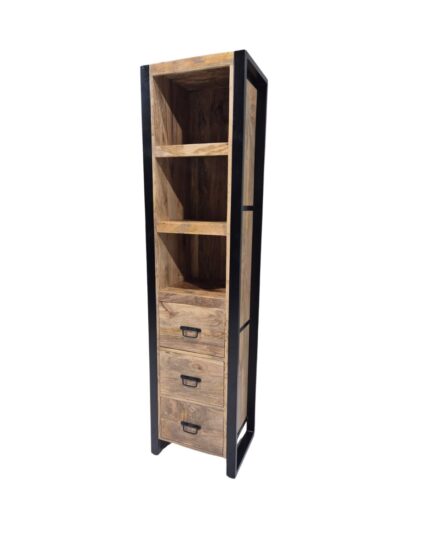 Industrial Mango Wood Tall Cabinet with 3 Drawers