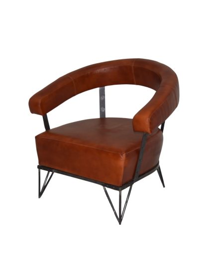 Sink into effortless comfort with this VB Crafts Roundback Leather Lounge Chair. Designed with a bold curved backrest and generously cushioned seat, this chair combines premium tan leather upholstery with a sturdy black metal frame. The open-back design adds a light, contemporary feel, making it a perfect accent for living rooms, lounges, offices, cafés, or reception areas. Stylish yet robust, it brings a refined industrial charm to any modern interior.