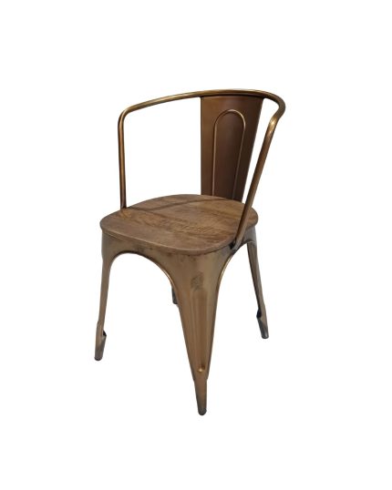 Give your dining or café space a rich vintage touch with this Brass Metal & Wood Café Chair from VB Crafts. Crafted with a sleek, curved metal frame in a warm brass finish and paired with a solid wooden seat, this chair blends industrial strength with classic charm. The low rounded back and arm-like rail offer casual support, while the compact design makes it perfect for dining tables, breakfast corners, bistros, or studio spaces.