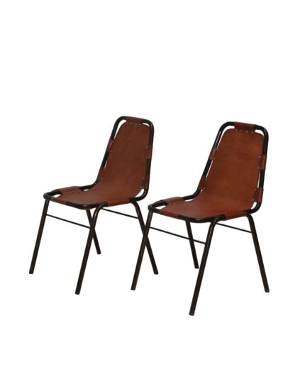 Set of 2 Industrial Brown Leather Strap Chairs