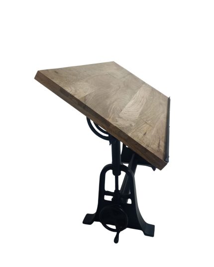 Industrial Crank Drafting Table – Mango Wood & Cast Iron Base