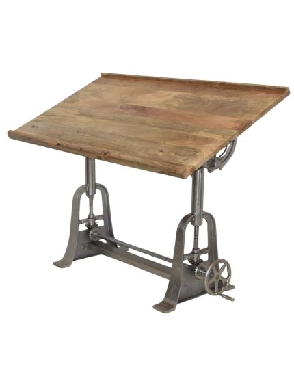 Industrial Crank Drafting Table – Mango Wood & Cast Iron
