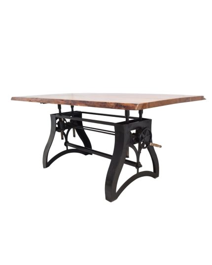 Add character and flexibility to your space with this Vintage Crank Height Adjustable Dining Table by VB Crafts. Featuring a beautifully finished solid wood top paired with a sculpted cast iron base, this table combines industrial mechanics with graceful curves. The dual side cranks allow you to smoothly raise or lower the tabletop, making it perfect for use as a dining table, work table, or display piece in cafes, restaurants, and stylish homes. Strong, distinctive, and functional, it instantly becomes the focal point of any room.