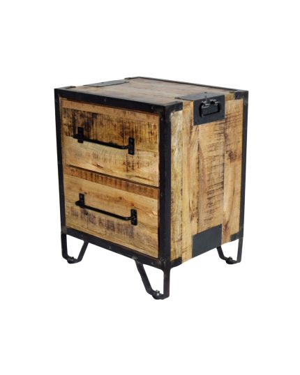 Expedition Industrial Mango Wood Bedside with 2 Drawers