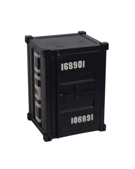 Bring a bold warehouse vibe into your home with this container-style bedside cabinet from VB Crafts. Designed to resemble a mini shipping container, it features a sturdy black metal body with embossed detailing and contrasting white numbering. The front door opens to reveal practical storage for books, gadgets and other essentials, keeping your space neat while adding a strong industrial design statement. Perfect beside the bed, next to a sofa or as an accent cabinet in a modern loft-style interior.