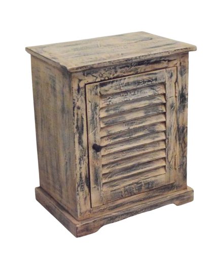 Bring a relaxed vintage feel to your home with this distressed shutter door bedside cabinet from VB Crafts. Crafted from solid wood with a hand-finished, weathered wash, it features a charming louvered shutter door and classic plinth base. The compact size is perfect next to your bed, sofa or in a cosy corner, while the closed cabinet space inside keeps books, accessories and daily essentials neatly out of sight. Its soft, rustic character blends beautifully with coastal, farmhouse and shabby-chic interiors.