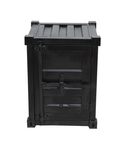 Give your room a bold, urban edge with this black container-style bedside cabinet from VB Crafts. Designed to look like a mini shipping container, it features a ribbed top, corner blocks and heavy latch hardware on the front door. Crafted entirely from sturdy metal in a deep black finish, this compact unit offers practical hidden storage for books, gadgets and everyday essentials while acting as a striking statement piece beside your bed, sofa or in a lounge corner.