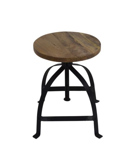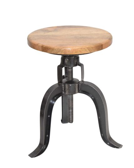 Bring a bold industrial touch to your space with this Iron Tripod Adjustable Stool by VB Crafts. Designed with a solid wooden round seat and a heavy-duty tripod iron base, this stool blends strength with style. The screw-lift mechanism allows easy height adjustment, making it perfect for living rooms, cafés, studios, kitchen counters, and décor styling. Its raw industrial finish and unique curved-leg design create a striking visual appeal while offering sturdy everyday use.