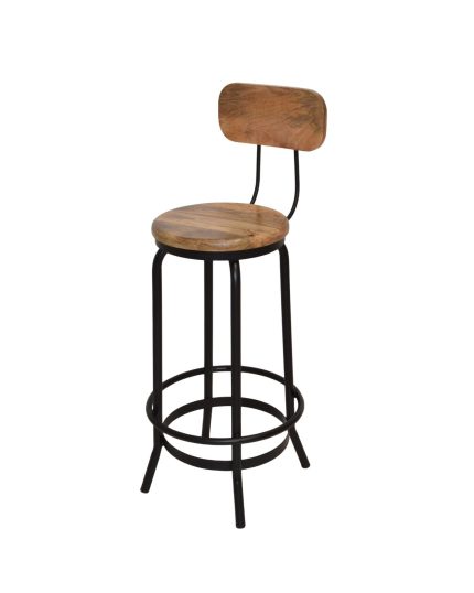 Enhance your interior with this stylish Industrial Wooden Bar Stool with Backrest by VB Crafts. Crafted with a natural-finish solid wooden seat and backrest, this stool offers both comfort and character. The sleek black metal frame provides exceptional stability, while the circular footrest ensures relaxing seating for longer durations. Perfect for kitchens, cafés, bars, or modern industrial spaces, this stool blends rustic warmth with contemporary minimalism.