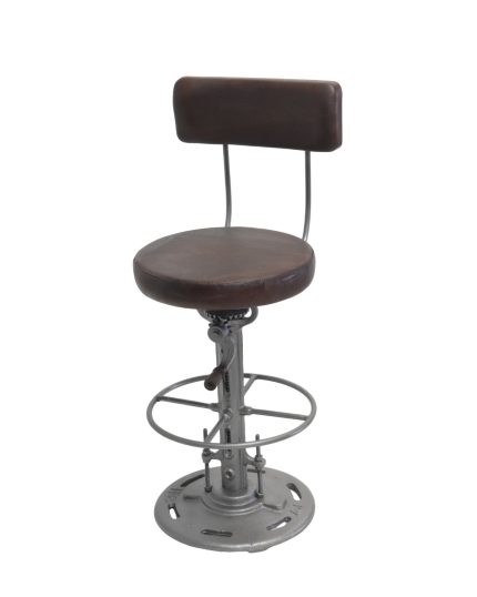 Vintage Industrial Adjustable Bar Stool with Leather Backrest