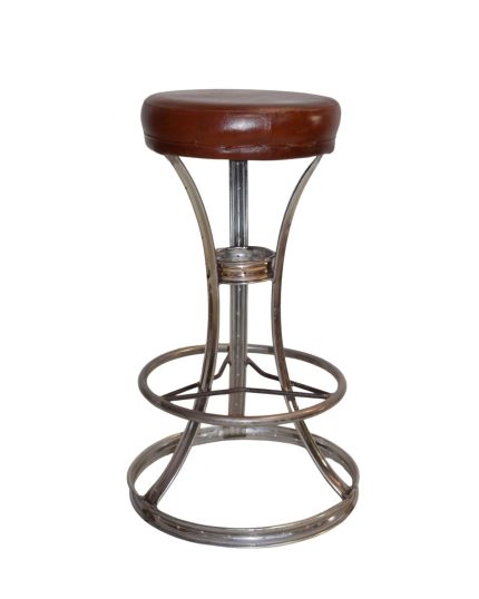 Vintage Chrome Metal Bar Stool with Leather Seat