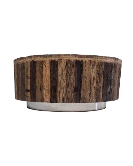Introduce bold, rustic elegance to your living space with this stunning Reclaimed Wood Drum Coffee Table, crafted to highlight the raw beauty of naturally aged wood. The round drum-style body features vertically arranged reclaimed wood pieces, each showcasing unique weathered textures, deep grains, and natural imperfections that add authentic character. The table is elevated on a sleek stainless steel base, creating a beautiful balance between rustic charm and modern sophistication. Perfect for luxury homes, cafés, lounges, or designer interiors, this coffee table serves as a striking centerpiece that instantly enhances any room.