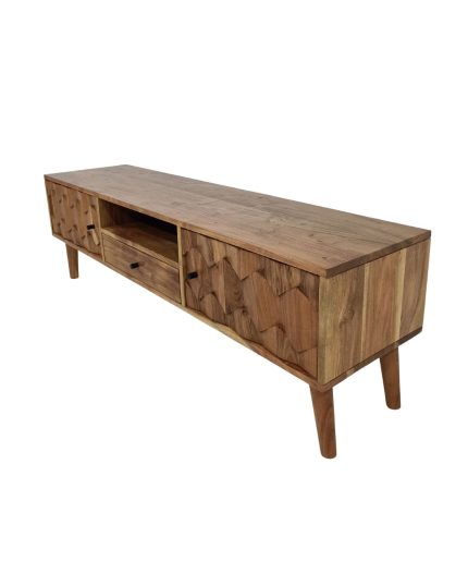 Designer Solid Wood TV Cabinet with 3D Geometric Doors