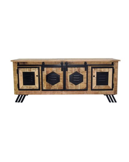 Industrial Mango Wood Metal Frame TV Cabinet