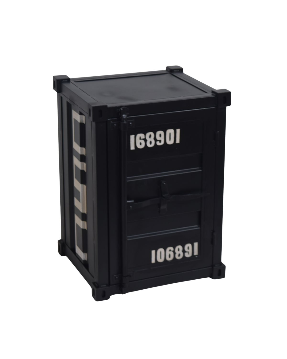 VB Crafts Black Industrial Container Bedside Cabinet – a compact metal storage unit with bold container styling and numbered details, perfect for adding edgy industrial charm to any room.