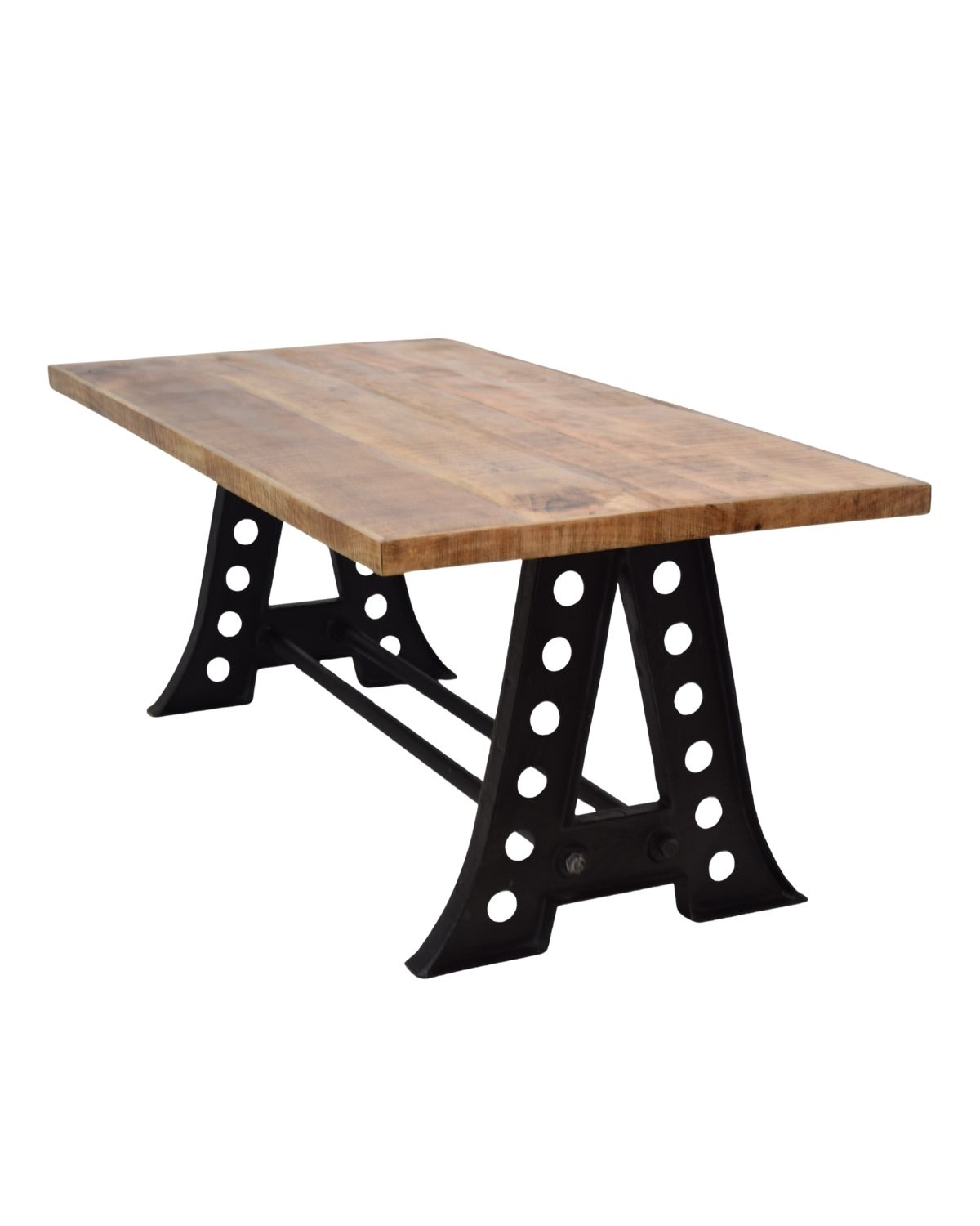 A bold industrial A-frame dining table with a solid wood top—strong, stylish, and perfect for modern and rustic interiors.