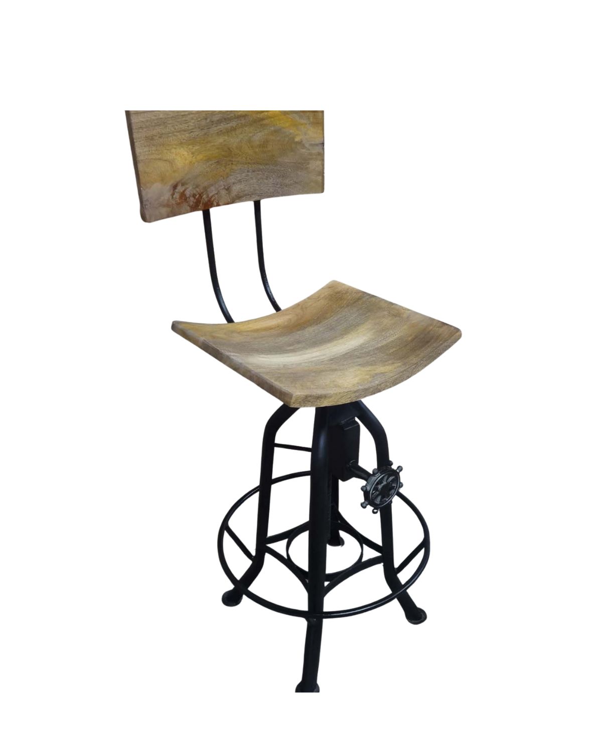 Bring a bold industrial statement into your home or commercial space with the VB Crafts Industrial Adjustable Wooden Bar Stool. Designed with a beautiful reclaimed-style wooden seat and backrest, this stool offers exceptional comfort with its gently contoured seating. The sturdy black metal base provides excellent stability, while the side hand-crank mechanism allows height adjustment, making it perfect for kitchen islands, bar counters, cafés, studios, and work desks. A harmonious blend of rustic wood and industrial metal, this stool adds character, durability, and functionality to any modern interior.