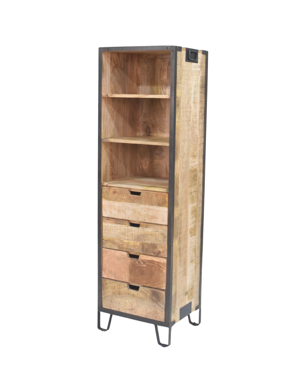 Industrial Mango Wood Tall Cabinet with Shelves & Drawers