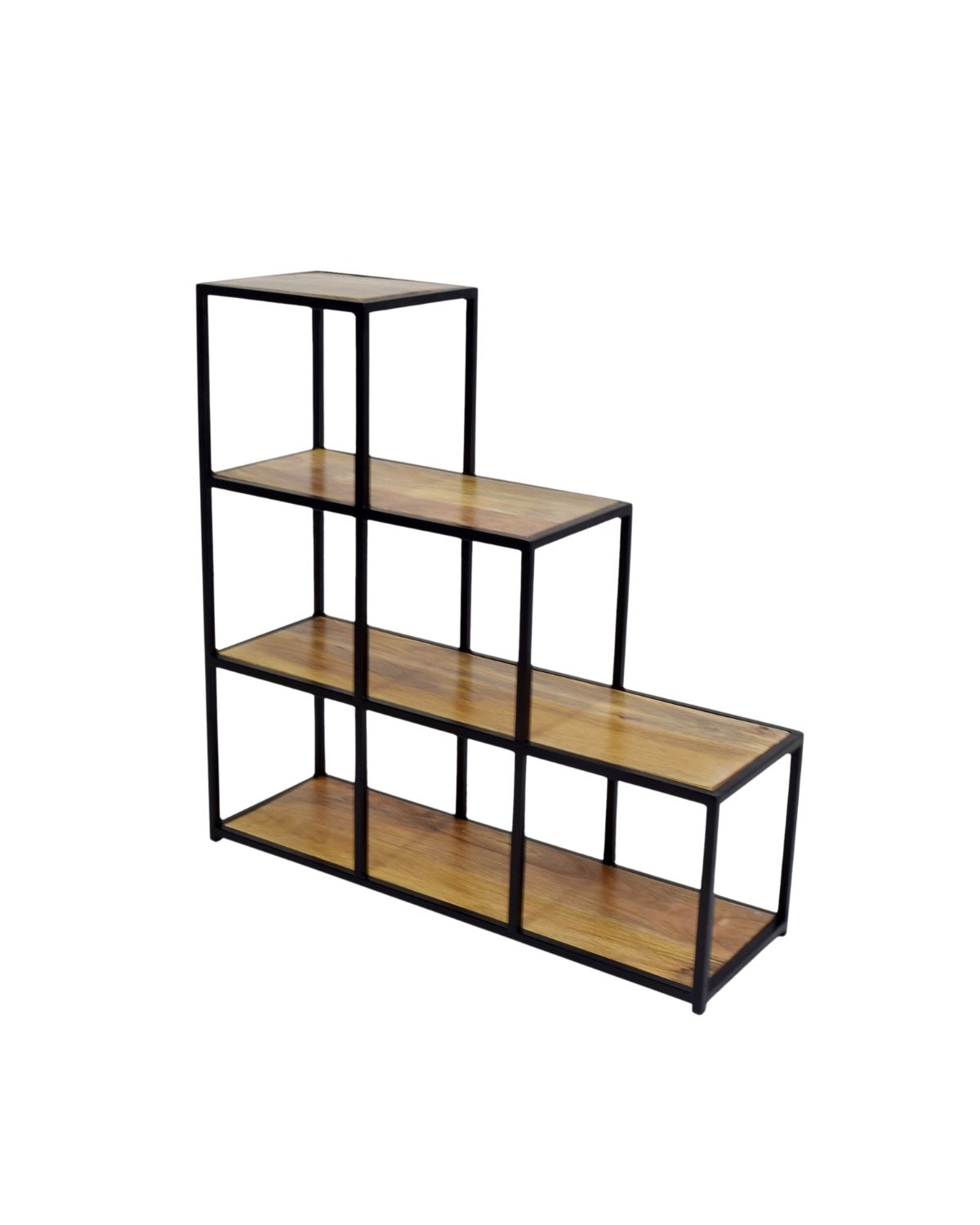 Showcase your décor with style using this Industrial Step Display Shelf, crafted with a sleek metal frame and smooth wooden shelves. Its unique stepped design adds a modern architectural touch, making it perfect for displaying plants, books, art pieces, or retail merchandise. Lightweight yet sturdy, this piece blends industrial minimalism with functional versatility—ideal for homes, studios, offices, or stores.