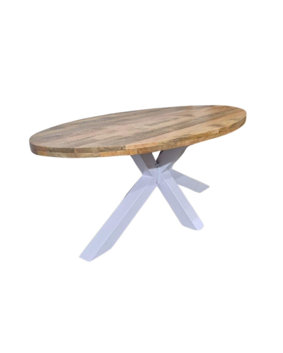 Add a fresh, modern touch to your living room with this elegant Oval Mango Wood Coffee Table, designed with a sleek oval top made from premium solid mango wood. The natural wood grains create a warm and inviting look, while the sturdy white powder-coated iron cross legs provide a striking contrast and excellent stability. Its contemporary design makes it an ideal centerpiece for modern, minimalist, Scandinavian, and chic interiors. Whether placed in a home, café, office, or lounge, this coffee table blends style and strength effortlessly.
