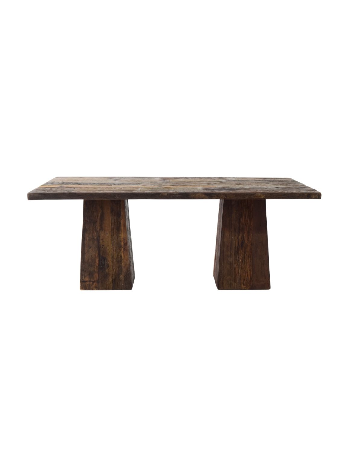 A bold reclaimed wood dining table with solid block legs—perfect for adding natural warmth, rustic charm, and lasting strength to any space.