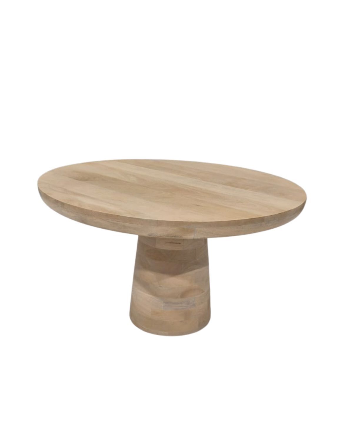 A beautifully handcrafted solid mango wood round table featuring a stylish pedestal base—perfect for modern and minimalist interiors.