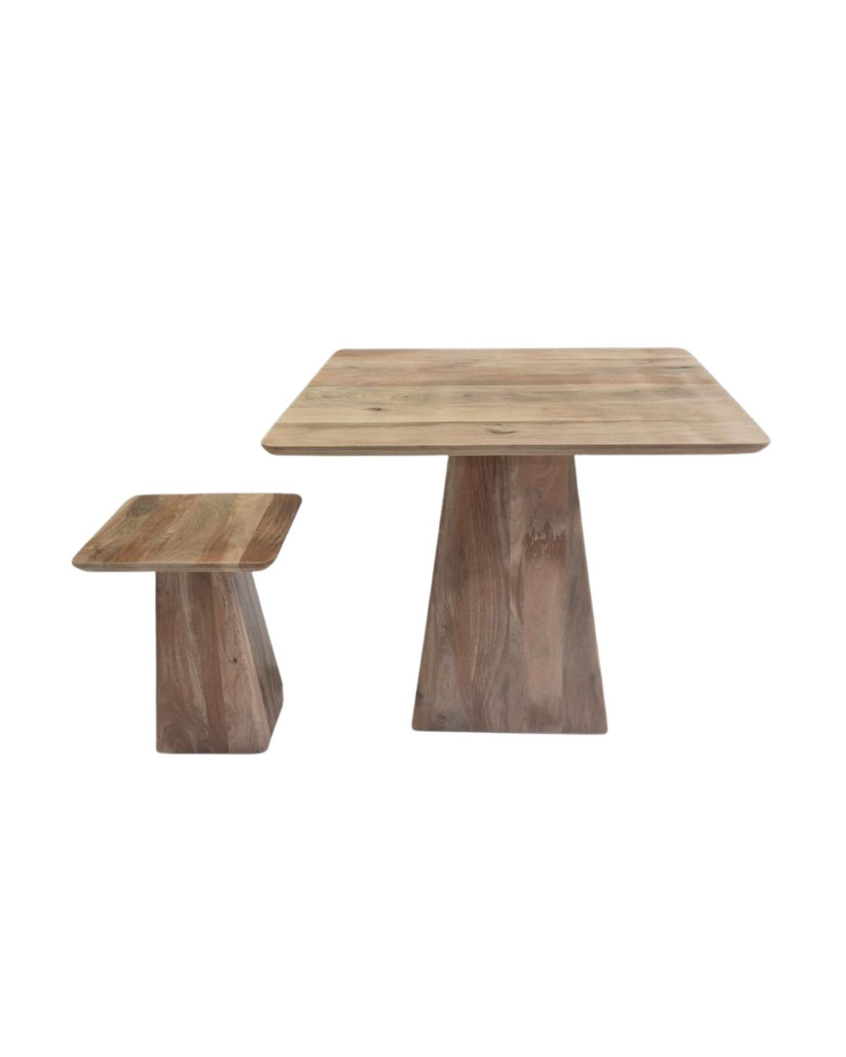A two-piece solid wood square table set featuring a modern flared pedestal base—stylish, sturdy, and ideal for premium interior décor.