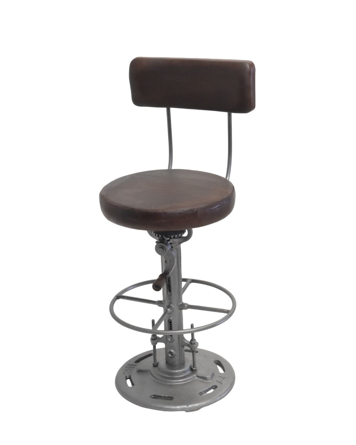 A stylish vintage industrial bar stool with a leather seat, adjustable height, and cast-iron base—perfect for adding character and comfort to any space.