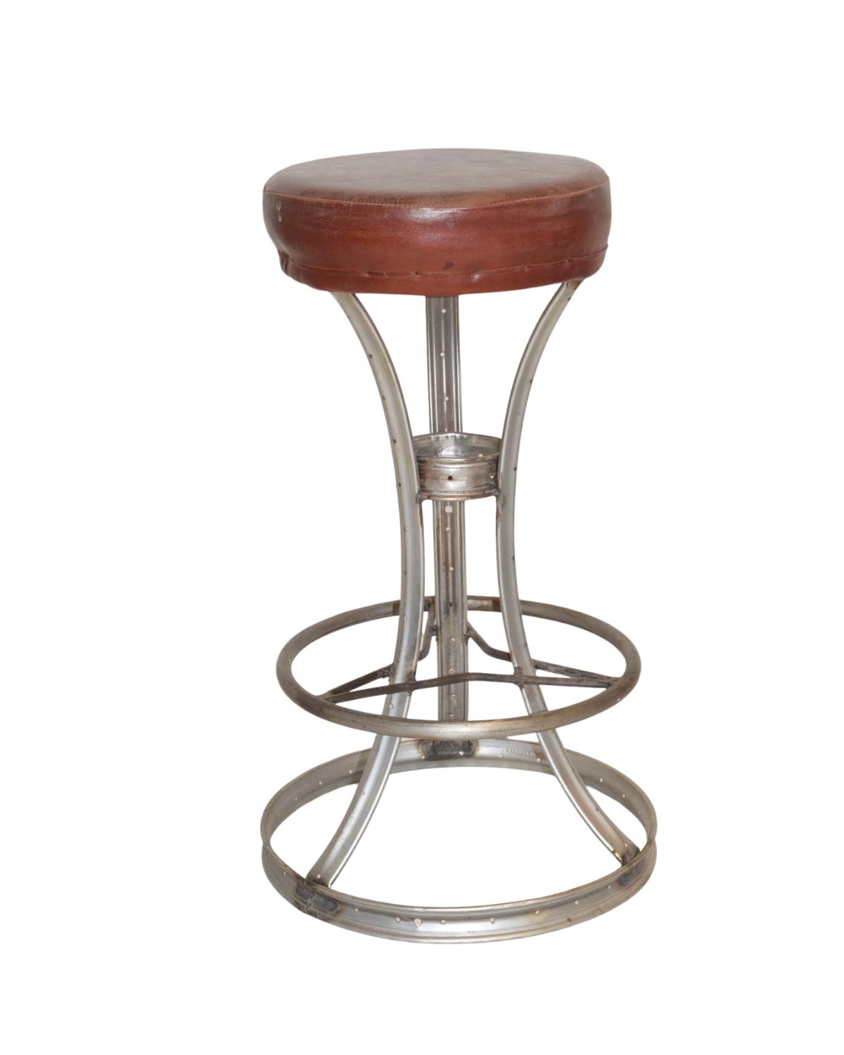 Vintage Industrial Metal Ring Base Bar Stool with Leather Seat