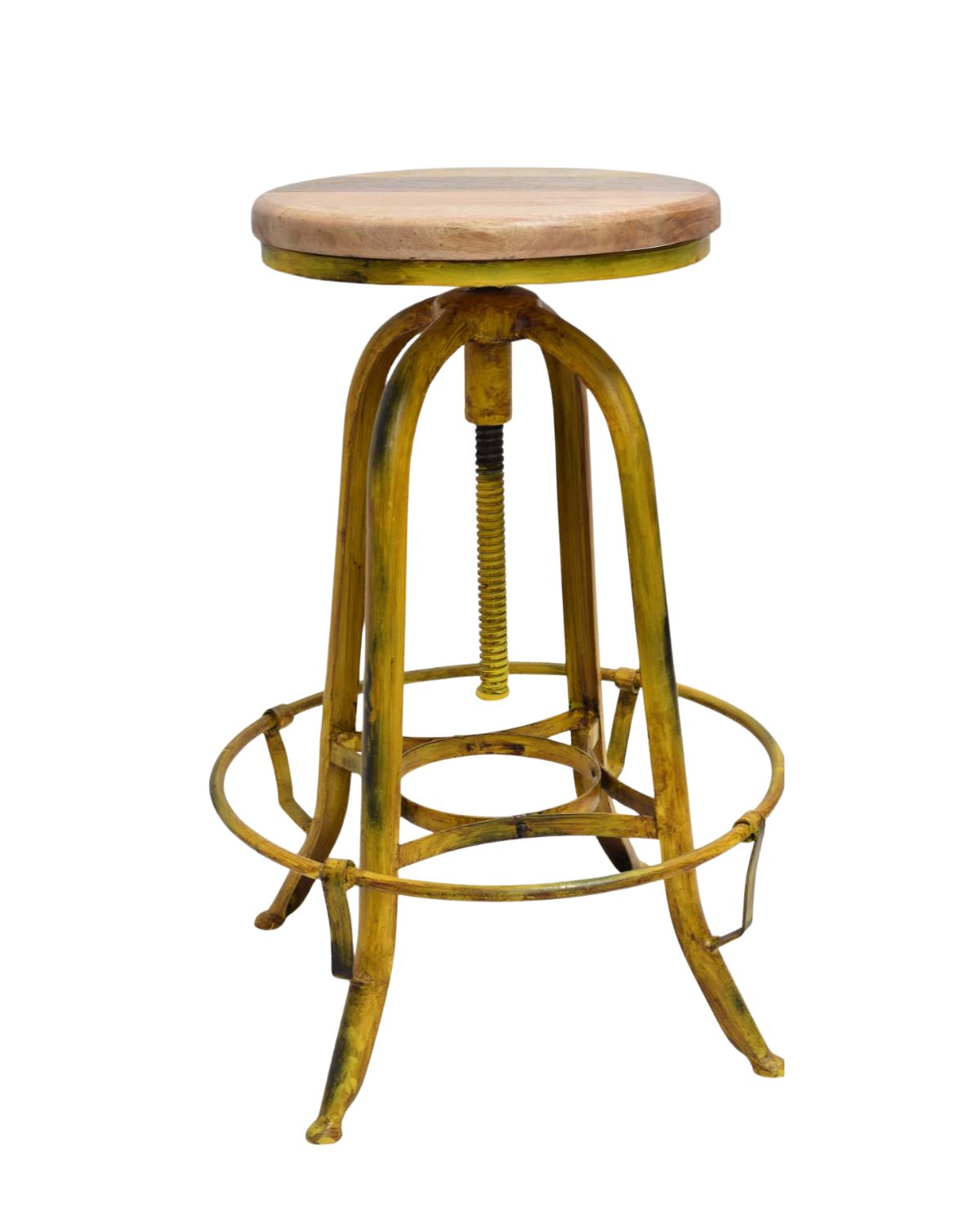 Vintage Yellow Industrial Adjustable Wooden Bar Stool