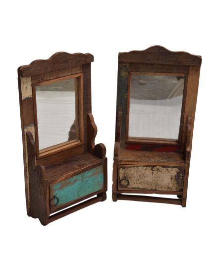 Vintage Wooden Mini Mirror Cabinet Set